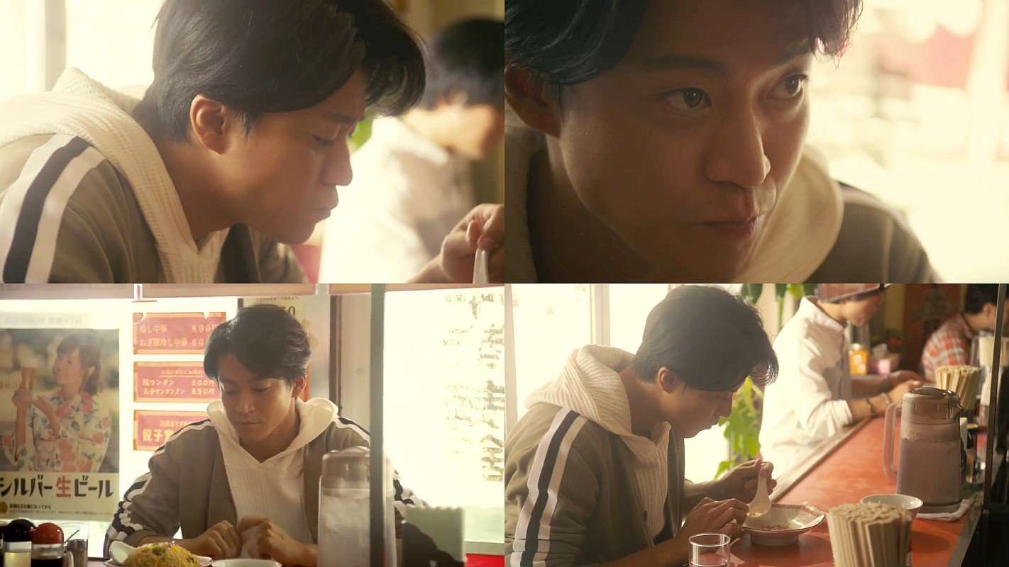 小栗旬さんが、ジャージのままで、中華料理屋にやってきて、チャーハンをひたすら食べながら「これが家で食えたなら。食えたなら」とつぶやき、コックの真似をしてレンゲでチャーハンをくるっとすくおうとして失敗してこぼしてしまい、こぼしたチャーハンを拾って食べるCM改訂版です。