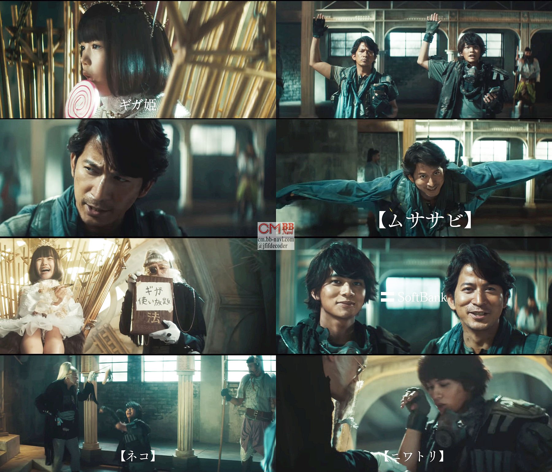 『ギガを制限する姫』のギガ姫役の粟野咲莉ちゃんの無茶ぶりで、岡田准一さんが『ムササビ』の真似をして、ギガ使い放題に変えて貰う、ソフトバンクのCM 30秒版。