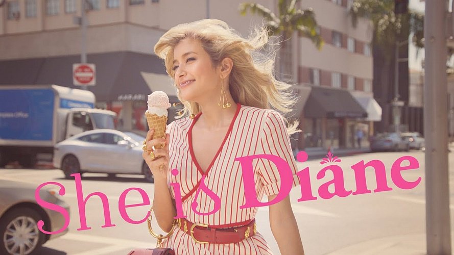 外国の街を歩くストライプのミニのワンピース姿のモデルのローラが、アイスクリームを買って警察官に「食べる?」と微笑むのを、少女がベランダや物陰などから見つめ”彼女はめちゃくちゃだけど、なぜか憎めない。なんでだ?”とつぶやく、モイストダイアン パーフェクトビューティー のCM改訂版(2018年2月。最初に右上にNatureLabのロゴが入ります)です。