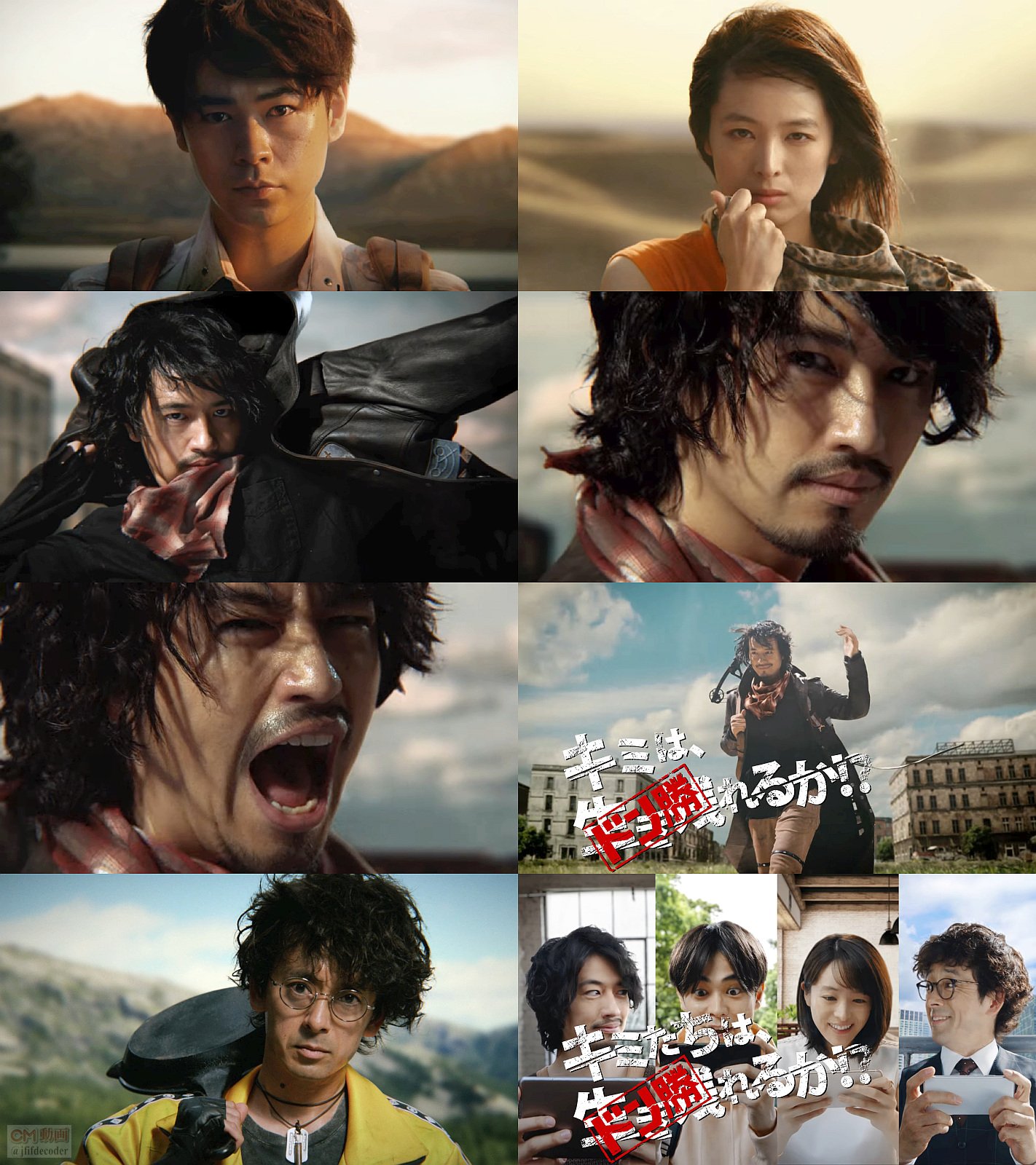 俳優の斎藤工さんのスローモーション映像と共に「逃げるが勝つ」と語り、男性ナレーションが「世界熱狂、バトルロイヤルゲーム。君は生き残れるか?」と語る、PUBGモバイルのCMです。
