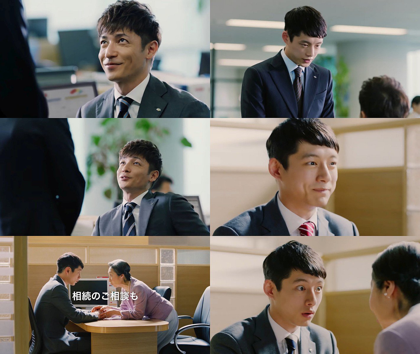 後輩役の俳優の坂口健太郎さんが、先輩役の俳優の玉木宏さんに、相談にやってきて、相続プランの相談に乗った初老の男性から「気にいった。君、いい人を紹介しよう」と言われた事を話し、いい人の初老の婦人を紹介され、婦人が「気にいった。いい人を紹介させて」「どう?」と、顔を近づけて言うので「え?」と驚く、野村證券のCM動画です。