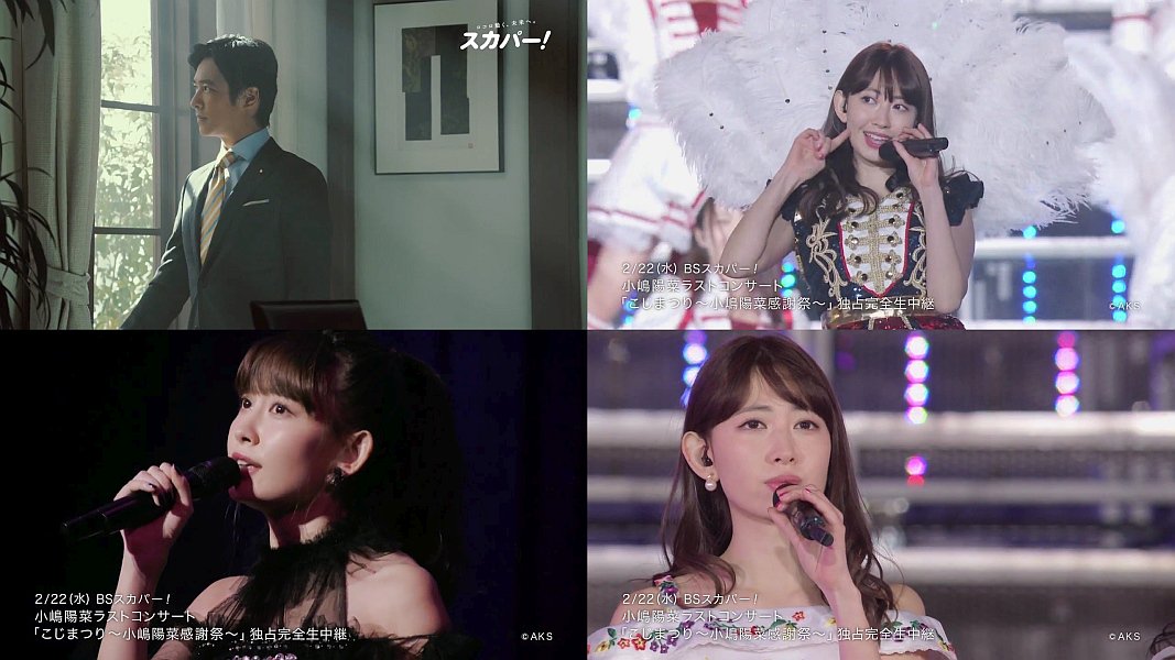 議員役の俳優の堺雅人さんが、秘書役のフリーアナウンサーの夏目三久さんに、「一体スカパーは何をやってるんだ」と聞き、報告内容を知ると、「そんな大事なこと、なぜ早く言わない」と叱責する、スカパーのWeb限定のCMです。今回はAKB48小嶋陽菜ラストコンサート独占完全生中継の、こじまつりです。