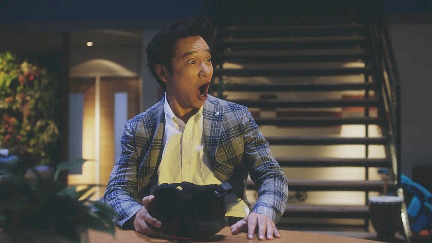 上司役の俳優の堺雅人さんが会社に戻ると誰もおらず、そこにあったVRのゴーグルをつけると、主演の映画鎌倉ものがたりのPR動画が流れ「まるで映画の宣伝だな」とつぶやきながらVRを外すと、隣に映画に出ているカエルが座って クラフトボスを飲んでいるCMです。