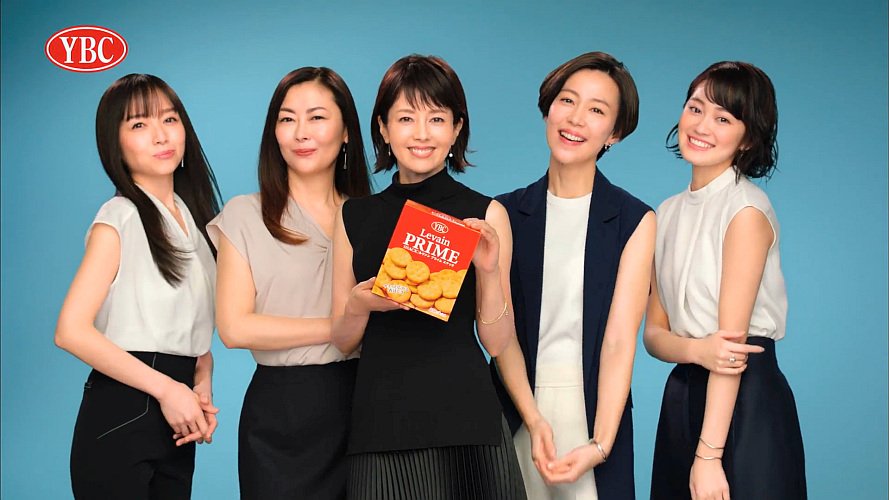 女優の沢口靖子,木村佳乃,中山美穂,吉本実憂,宮本笑里の5人が登場し、ルヴァンプライムスナックを食べ「ぜひご一緒に」と言う、ヤマザキビスケットのCMです。