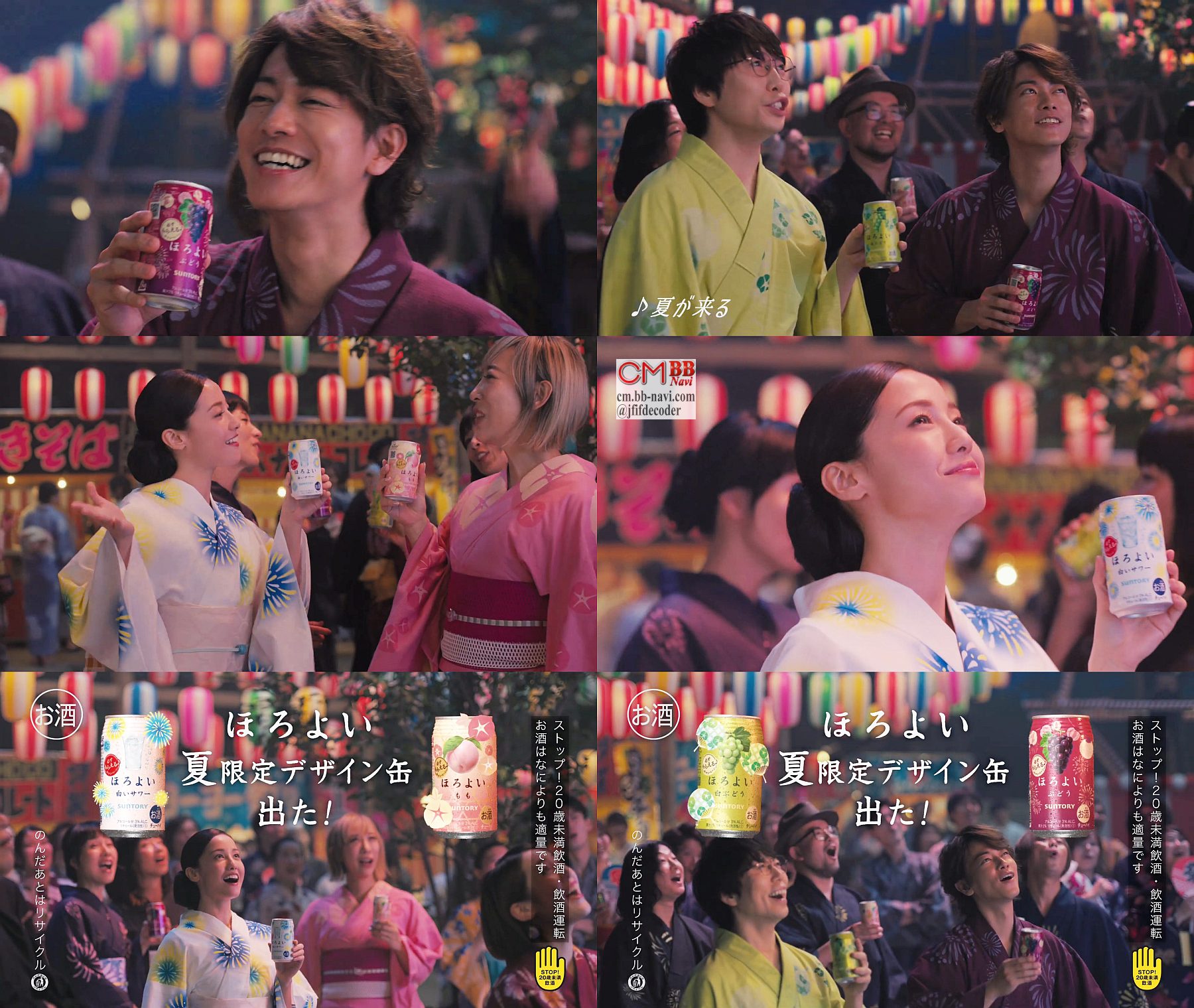 「夏が来る いつも夏は来る〜♪ 」とCM曲の大黒摩季さんの”夏が来る”のリズムに乗って、浴衣姿の俳優の佐藤健さんと女優の沢尻エリカさんが「あの夏よりも」「この夏が楽しい。って夏にしようよ」と言う、夏だけのほろよいのCM 8月バージョンです。