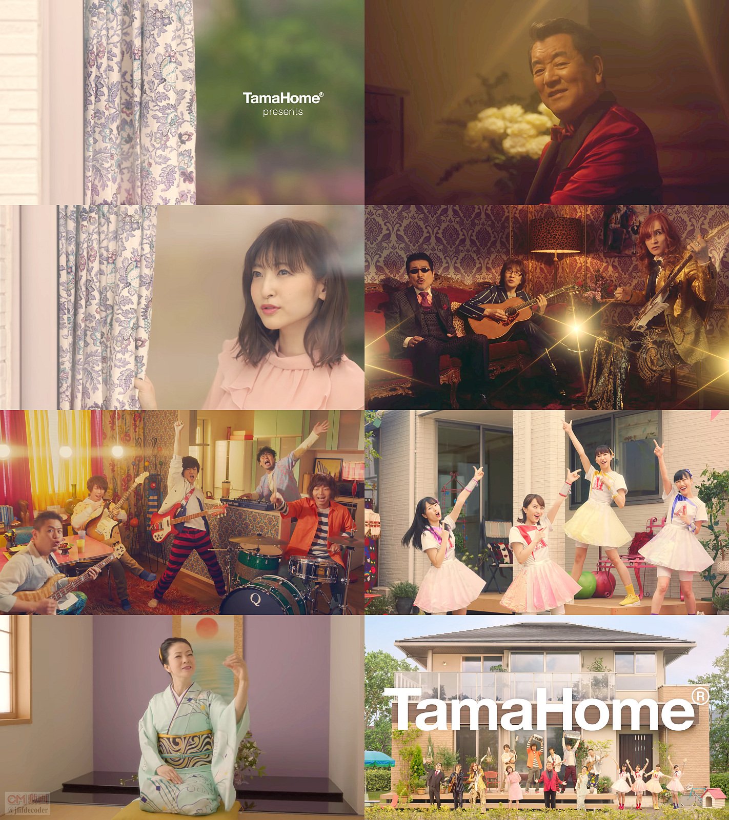 神田沙也加,アルフィィー(坂崎幸之助,高見沢俊彦,桜井賢),坂本冬美,キュウソネコカミ,加山雄三,ももいろクローバーZ(佐々木彩夏,百田夏菜子,高城れに,玉井詩織)の全員で一緒に、タマホームの家の前で「ハッピーライフ ハッピーホーム タマホーム♪」と、タマホームの歌を歌うCMです。