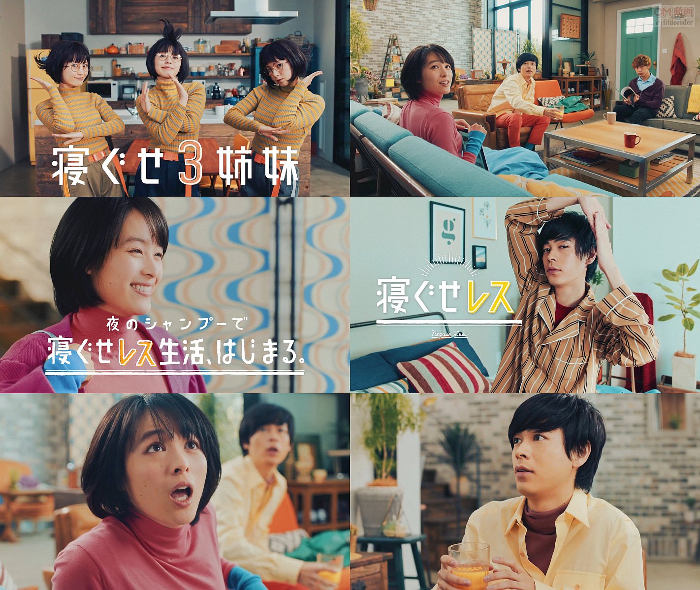 リビングでくつろいでる女優の清野菜名さんと俳優の成田凌さんの所へ「立てはね寝ぐせ」「横はね寝ぐせ」「後ろはね寝ぐせ」の寝ぐせ3姉妹が登場し、清野菜名さんが3人によく朝のはね寝ぐせを抑えるシャンプー エッセンシャル スマートスタイルを教える、CMです。