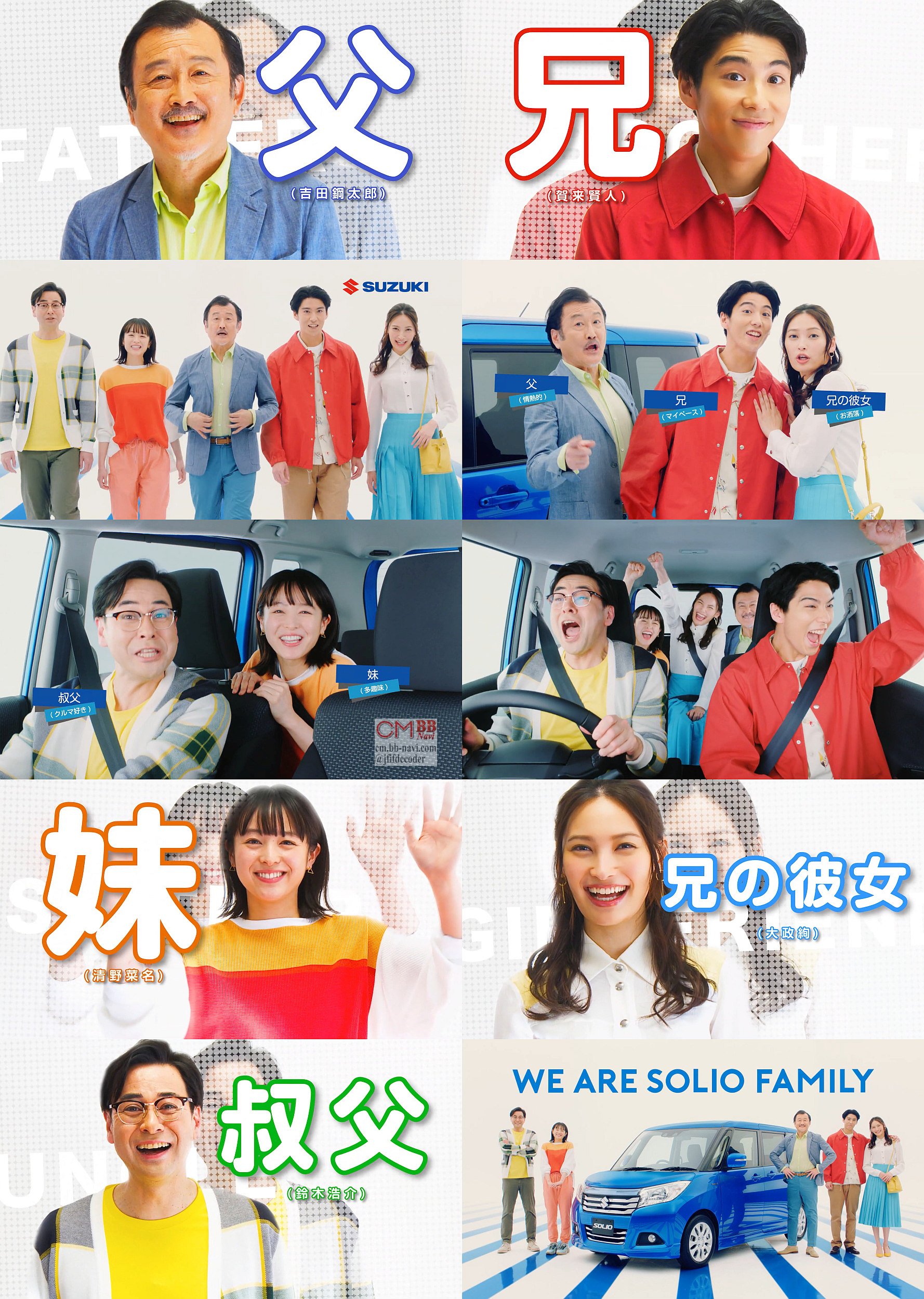 賀来賢人,清野菜名,吉田鋼太郎,大政絢,鈴木浩介の5人が「WE ARE SOLIO FAMILY」になるスズキ ソリオのCMのメイキング動画。