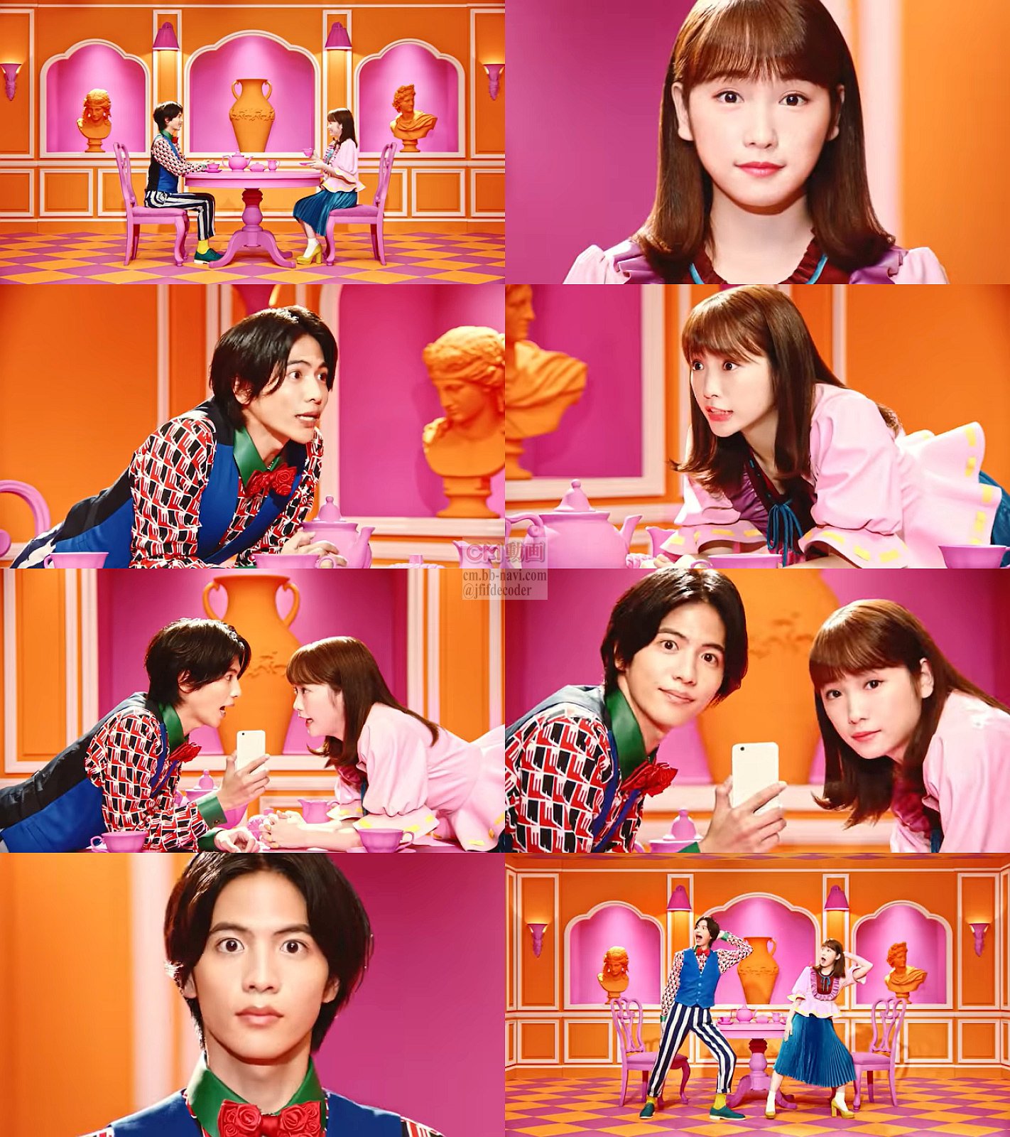 ピンク色の丸テーブル越しに座った、俳優の志尊淳さんが「川栄売れてるね」と褒めると、女優の川栄李奈さんが「いやいや、志尊こそ」と謙遜し、二人で身を乗り出して「もっと売れたい」「めっちゃ売れたい」とスマホを手に「ハイ、ラクマでね」と言うフリマアプリ ラクマのCM キャンペーン告知付きバージョンです。