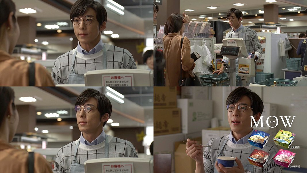 俳優の高橋一生さんがスーパーの店長役になって、レジ打ちして、見る目のある人妻の主婦に「ファンタスティック」と、ときめいてしまう、森永乳業 アイスクリーム MOWのCMです。