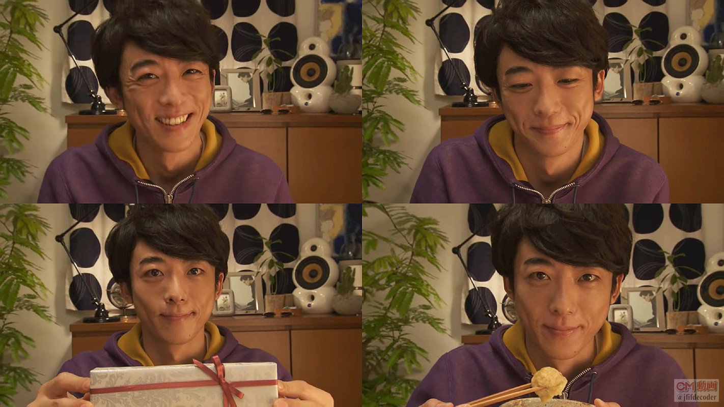 高橋一生さんとふたりきりの一緒の部屋で、焼あごだし鍋の〆に、たこ焼きを入れて、明石焼き風にするサプライズをして、出会って1年目のサプライズのプレゼントを貰う、バーチャルデート風の、多分ウェブ限定のCMです。