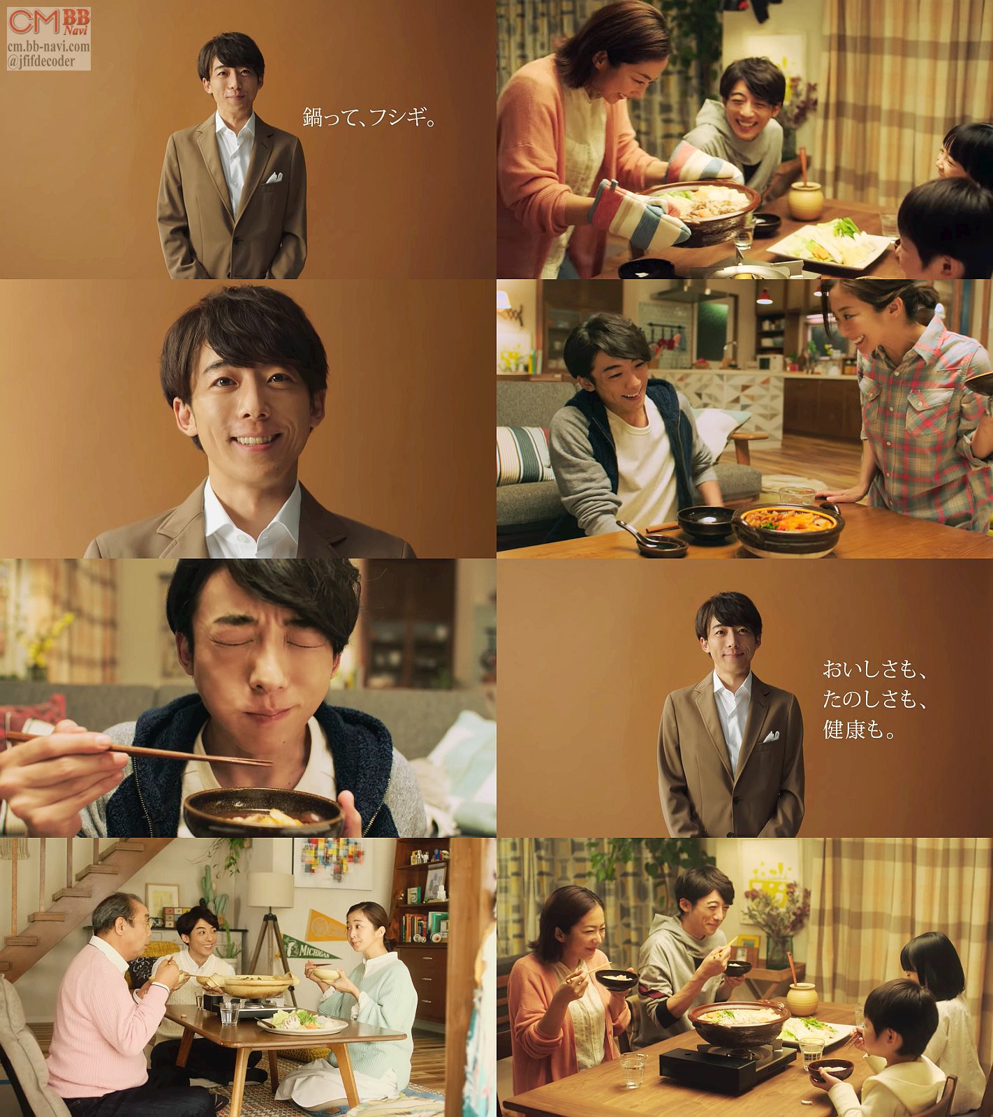 俳優の高橋一生さんが、主婦役の女優の優香さんと共演したミツカンの鍋のCMの映像と共に、「こんな魅力をもった料理って、きっと他にはないと思うんです」と鍋を語り、最後に微笑み「鍋活しよう」と言う、長編CMです。ウェブ限定かもしれません。
