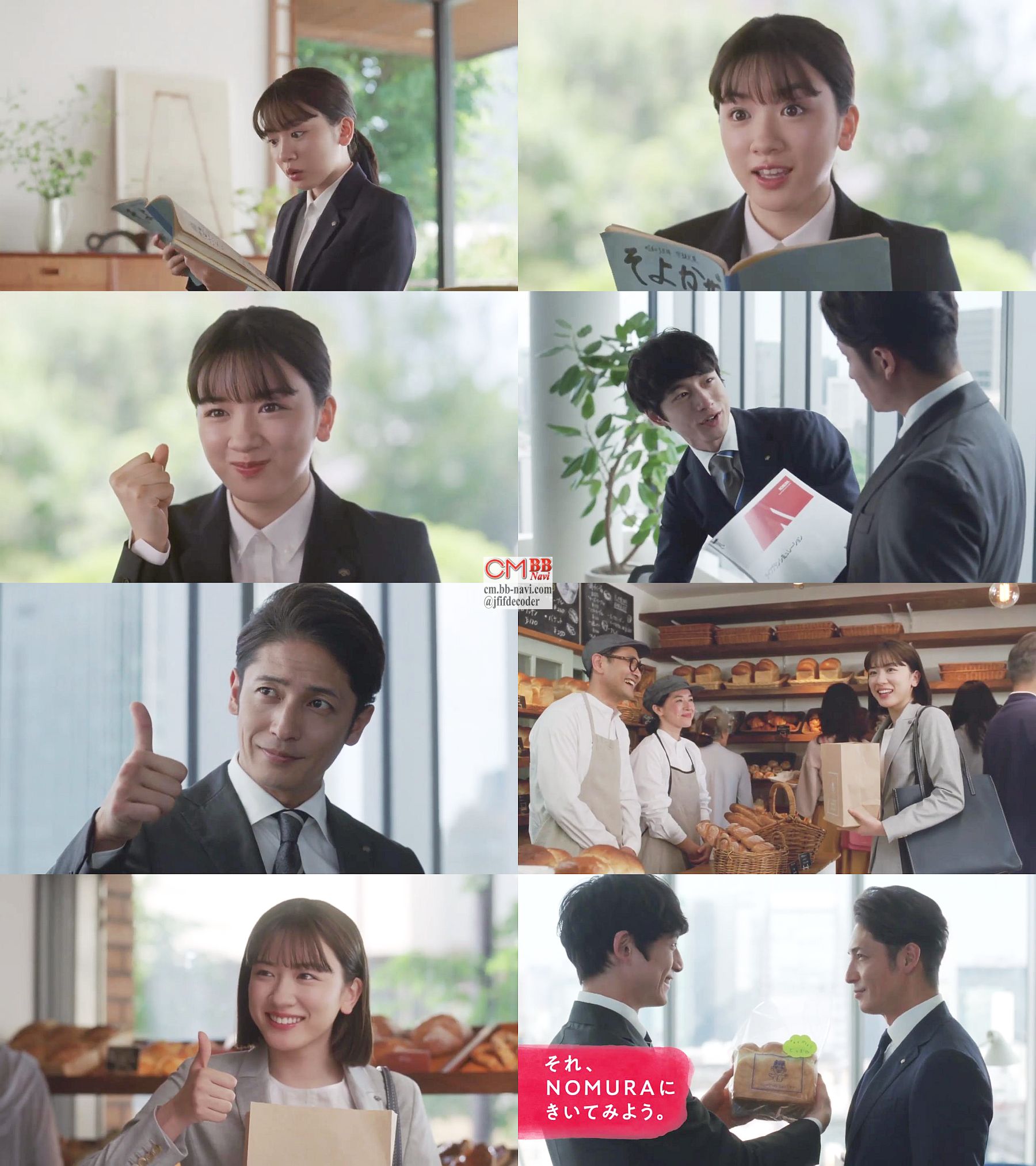 「それ、野村にきいてみよう♪」のCM曲と共に、子供の頃のパン屋になりたい夢を描く男性に出会った野村證券の永野芽郁さんが「色々考えさせてください。人生100年」とライフプランの手伝いをし、先輩役の玉木宏さんが「グッジョブだな」と親指を立てて言い、オープンして大人気になったパン屋を永野芽郁さんが訪れ「グッジョブです」と親指を立てます。