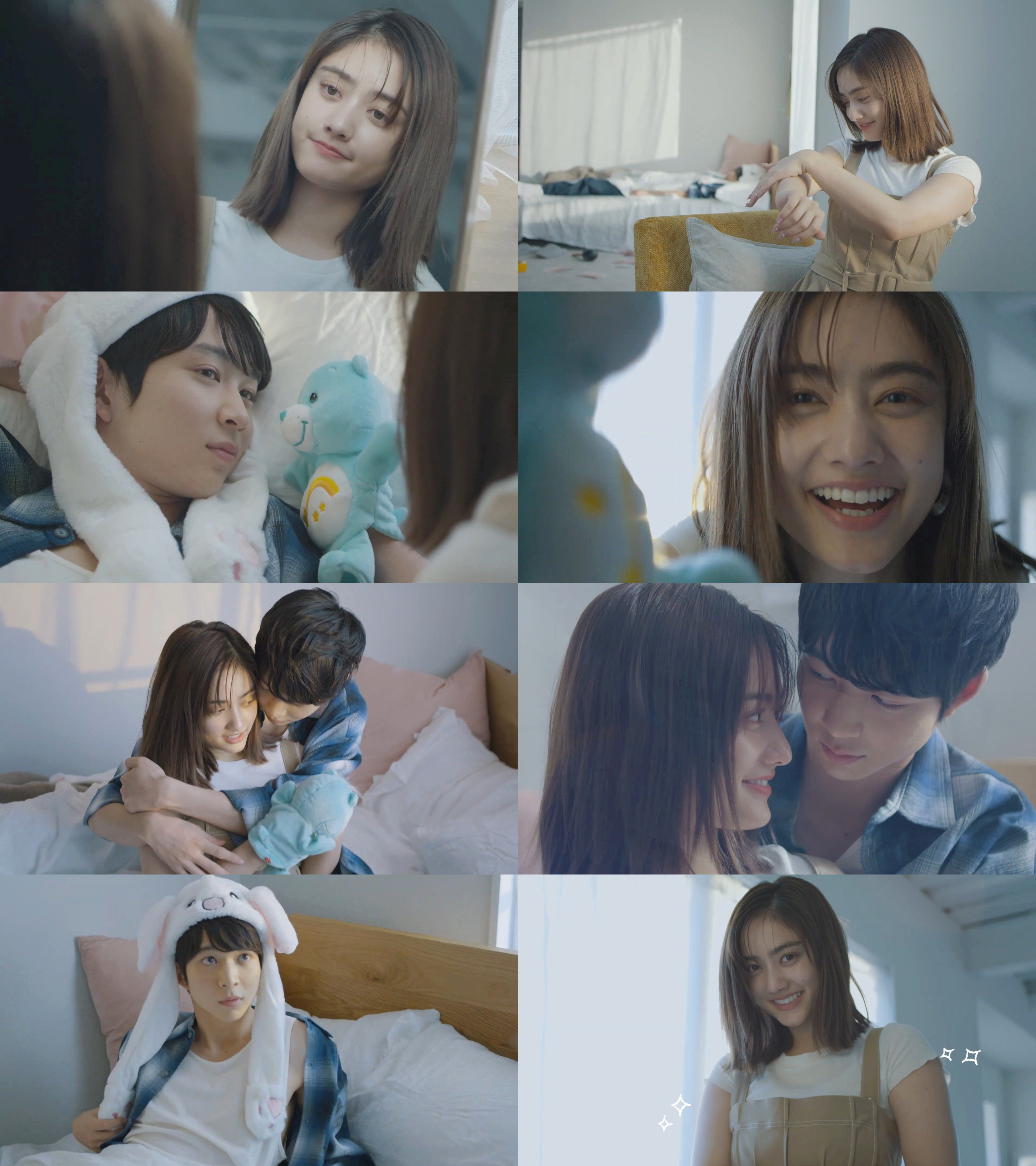 前篇では、肌に自信の無い谷まりあさんが「しーっ」と言って、鈴木仁さんが拗ねてベッドに潜ってしまい、後編では、谷まりあさんが肌にスキンアクアトーンアップUVを塗って、綺麗な肌になって、眠っている鈴木仁の所へ行って、マペットで眠りを覚ますと、ぎゅっとハグされて「肌きれいだ」と言われます。