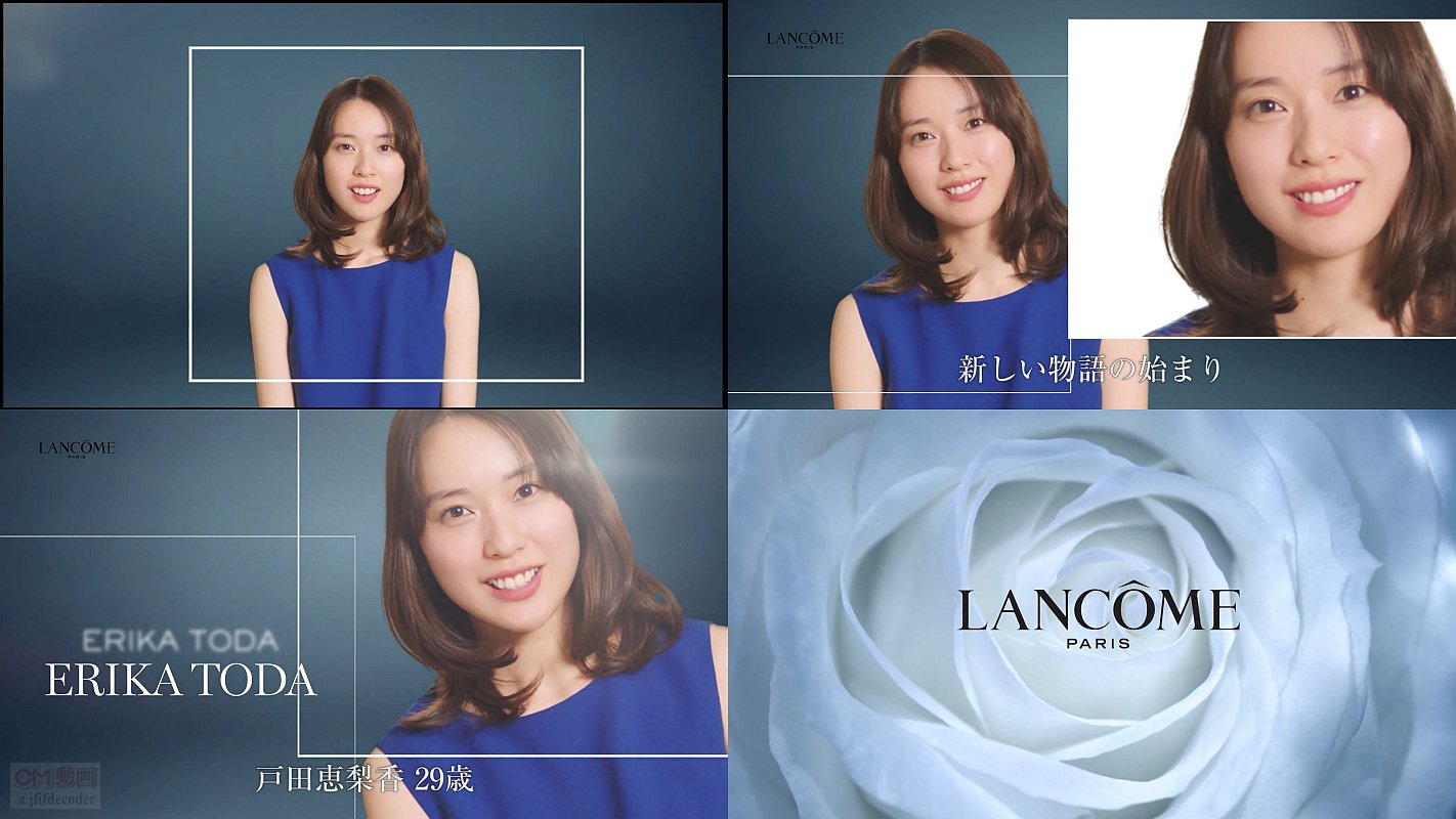 「カメラの前で演じる事が私の仕事」と登場した、ブルーのドレスを着た女優の戸田恵梨香さんが、日本初のランコムミューズに就任し、「でも、今日からが新しいスタート。新しい物語の始まり」と語る、ランコムのCM動画です。