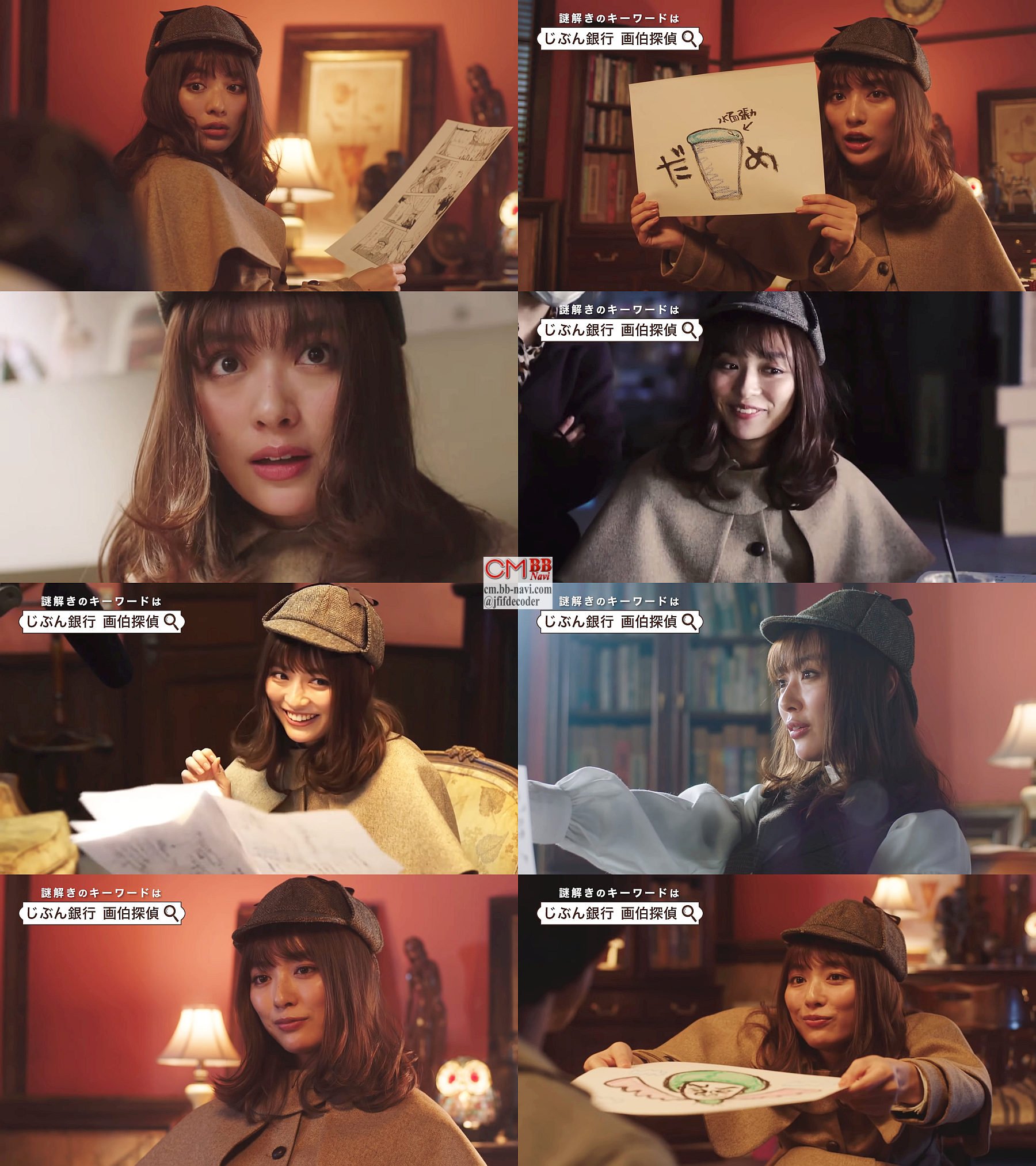 画伯探偵役の女優の内田理央さんが、自筆の絵の画力で難事件の謎解きをする長編ウェブCMのダイジェスト的なCMです。