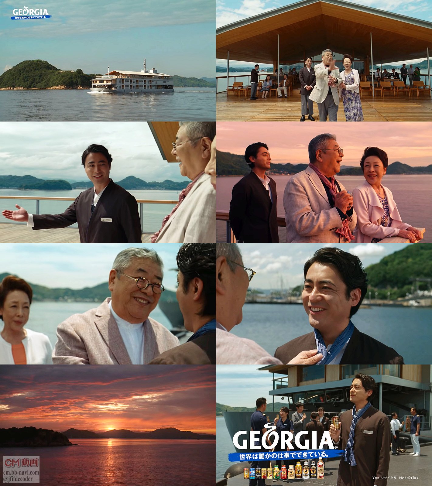 俳優の山田孝之さんが、瀬戸内の海に浮かぶ船舶の宿guntu(ガンツウ)のクルーになって、「私達のおもてなしにマニュアルは無い」と、お客様の中尾彬・池波志乃夫妻をご案内し、「今日獲れた中で最高の物を味わって頂く」と、夕食のディナーにグルメな中尾彬さんも「うまい」と言い、中尾彬さん夫妻が一期一会の瀬戸内の風景を堪能し最後に「いい旅だったよ」と、中尾さんから”ねじねじ”をプレゼントされ「お客様の笑顔が最高のご褒美だ」と語る、ジョ−ジアのCM 30秒版です。