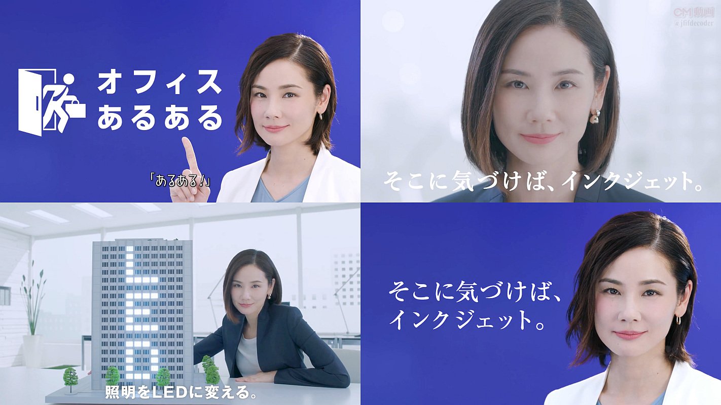 女優の吉田羊さんが「あるある」と登場する、オフィスのコント風ドラマ仕立ての、エプソンのスマートチャージ 大量出力篇のCMです。