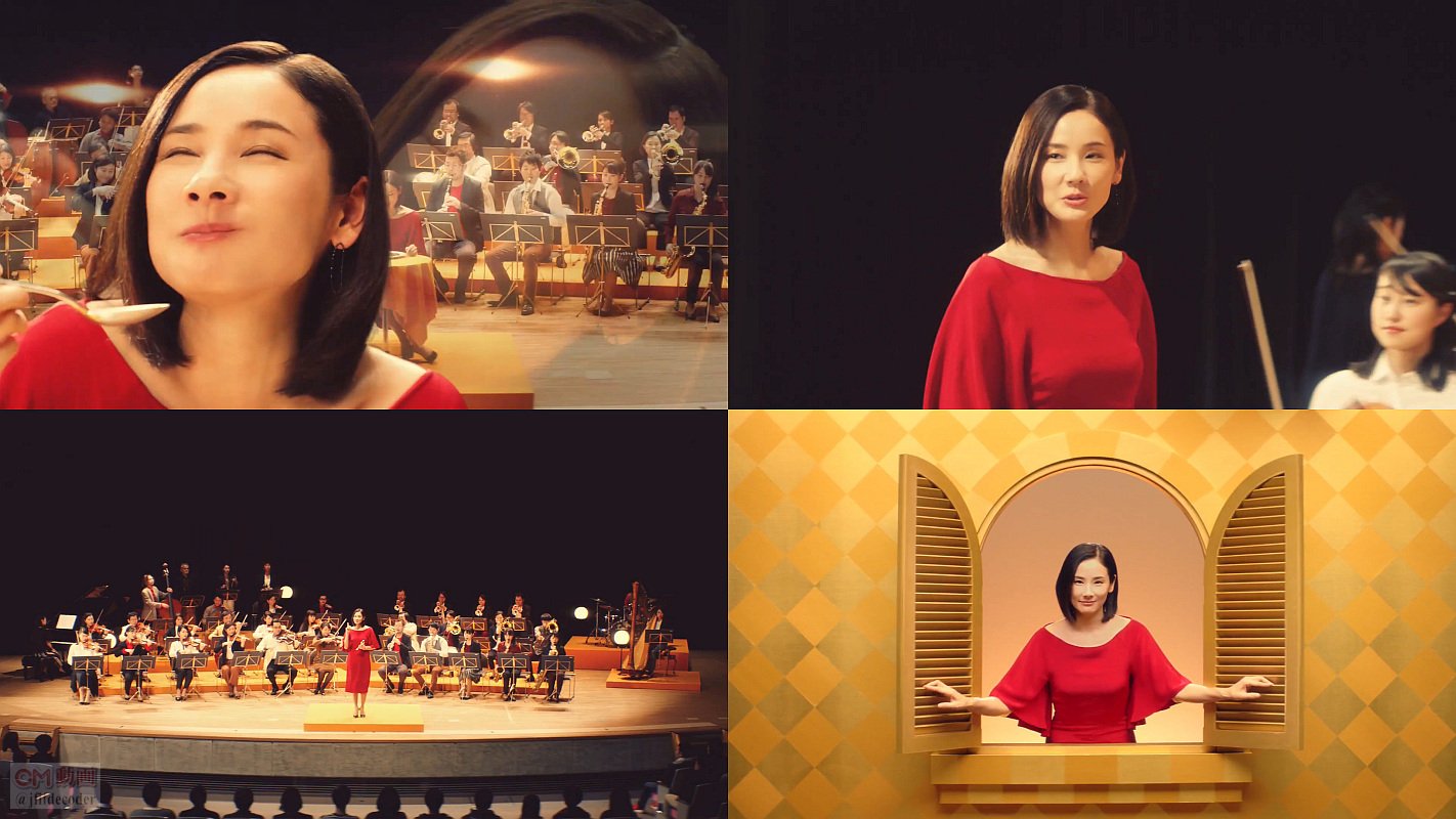 赤いドレスを着た女優の吉田羊さんが、「35種類のスパイスとハーブ、それぞれが個性を主張しながら奏でる絶妙のハーモニー、それを音で表現すると」と、ステージの上に登場し、ゴールデンカレーをおいしそうに一口食べると、楽団が演奏をはじめ、吉田羊さんが「35にしか作れないものがある」と語る、ゴールデンカレーのCM 30秒版。最後のカットに、ゴールデンカレーバリ辛も入ってるバージョンです。