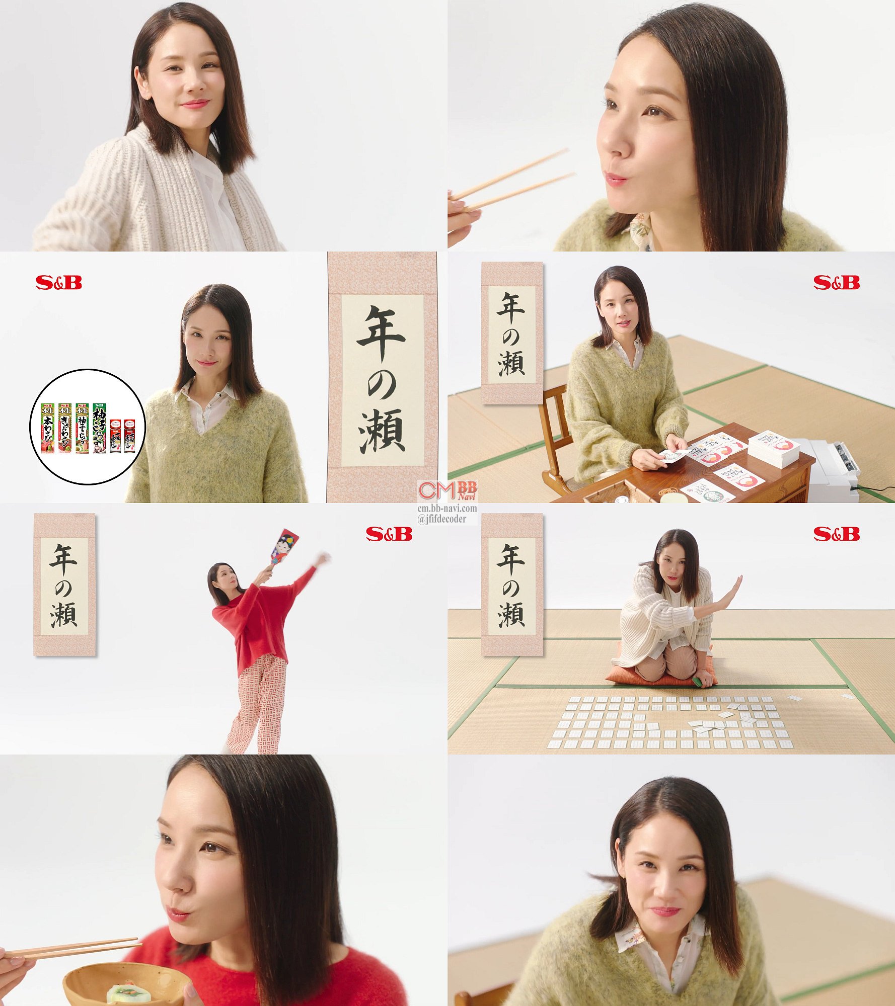 女優の吉田羊さんが、年の瀬に焦って年賀状を作成して、「お腹減った〜 お刺身とかお肉とか、いいなぁ」と言って、「エスビーの本わさび、きざみわさびで」とお肉や刺身を食べて『ピリッと年越し、エスビー♪』のエスビー食品 年末香辛料のCMです。