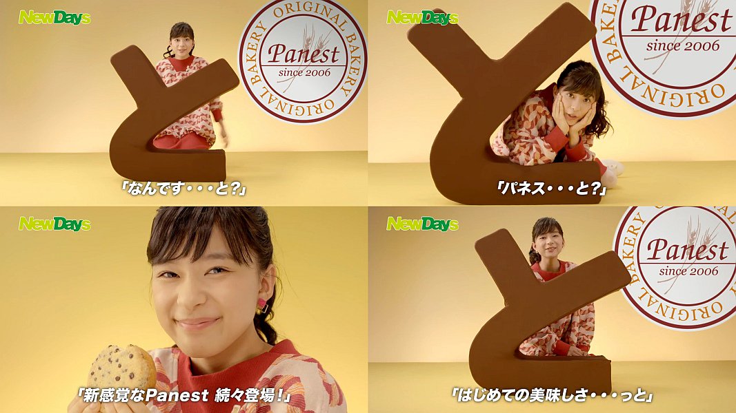 女優の芳根京子さんが、”と”のクッションと一緒に「なんですと?」「パネスと?」と登場し、プライベートブランドのパン、パネスト(Panest)を紹介するニューデイズのCMです。