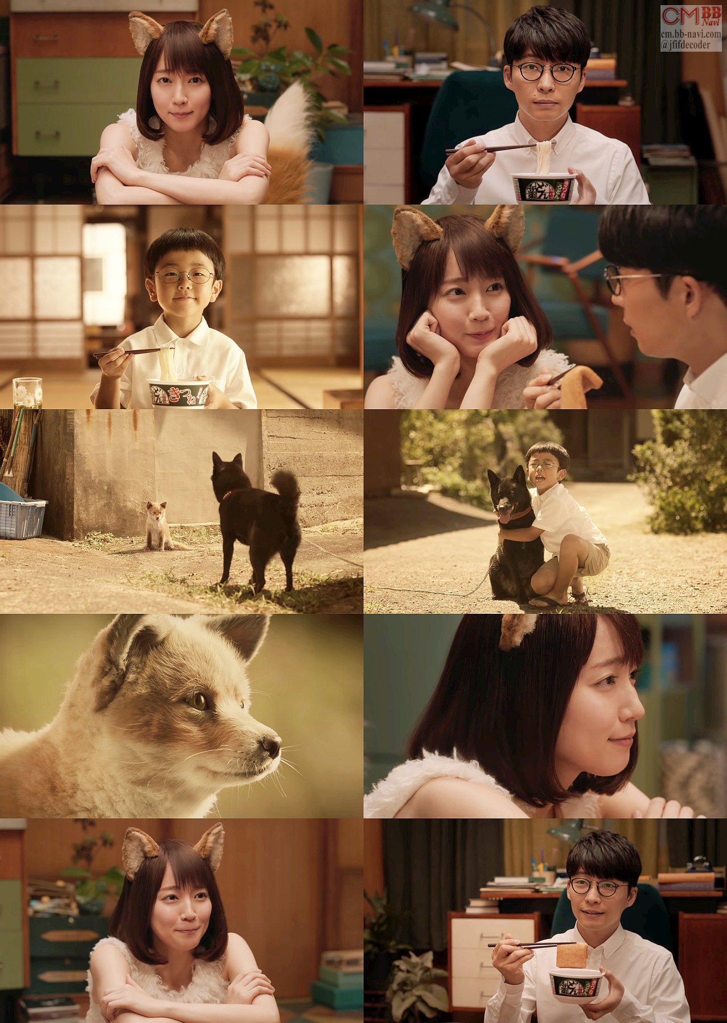 「私を助けてくれたのは、どん兵衛食べてた男の子♪」のCM曲と共に、俳優の星野源さんが、どん兵衛を食べてるのを、どんぎつね役の女優の吉岡里帆さんが見つめ、昔、子ぎつねの頃、犬に襲われそうになった時、どん兵衛を食べてたメガネをかけた男の子が助けてくれて、「元気でね」「またね」と言ってたのを思い出し「ありがと」と微笑むCM 30秒版です。