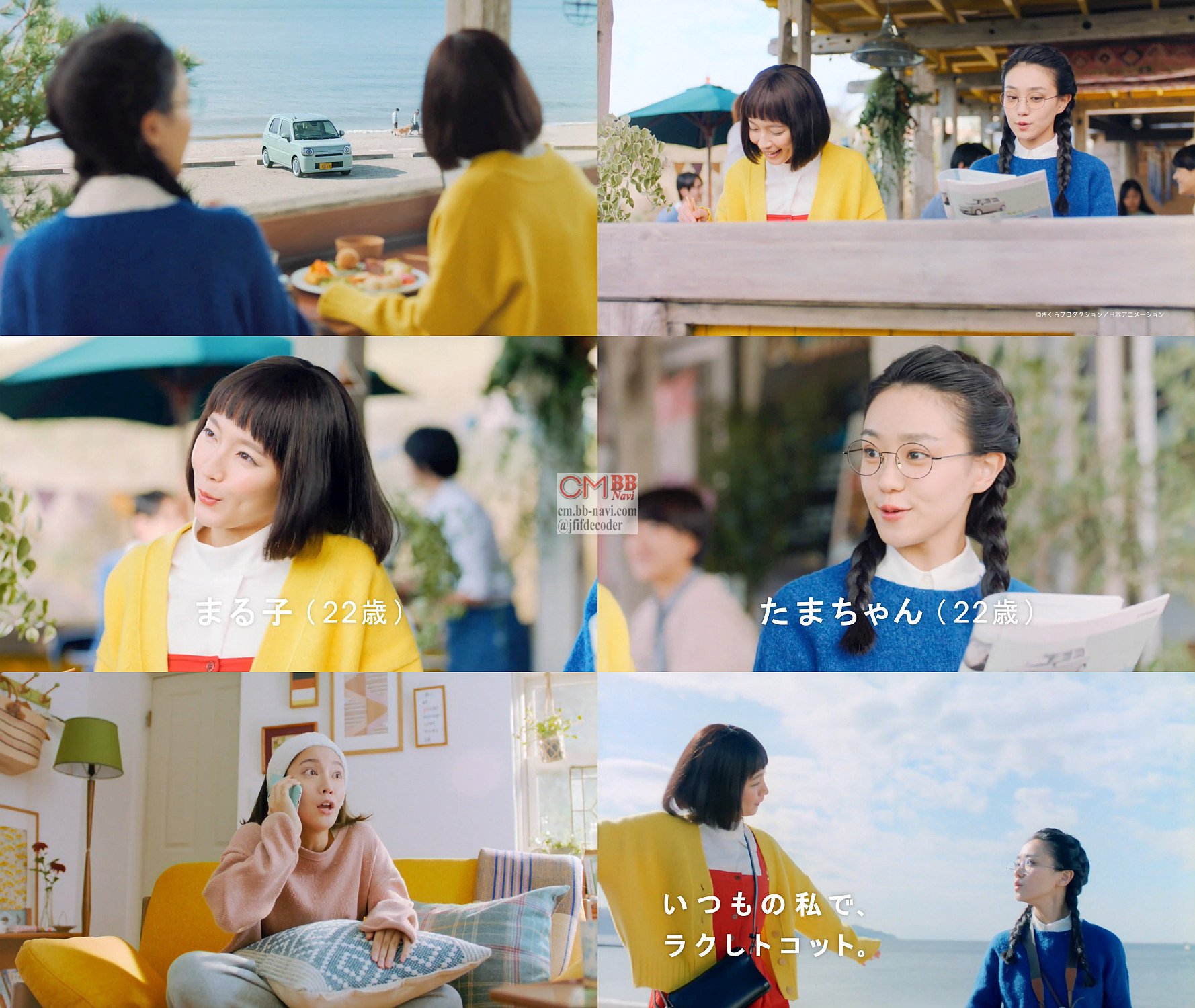 22歳の大人になったまる子(ちびまる子)役の吉岡里帆さんが海の見えるカフェで、たまちゃん役の女優の奈緒さんに、「まるちゃんはどうしてトコットにしたの?」「安心装備満載だから?」と聞かれ、友蔵にねだりやすい値段だった事が言えずに、「そう、それ」ととぼけて答えて、「なんか隠してない?」と勘付かれてしまうミラ トコットのCMです。